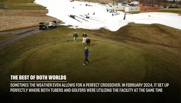 Sometimes the weather even allows for a perfect crossover. For example, in February 2024 the weather set up perfectly where both tubers and golfers were utilizing the facility at the same time.
